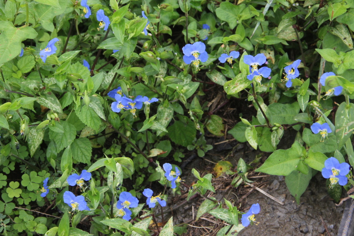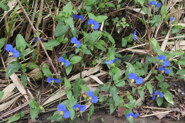 ツユクサの花を見ると、これほど綺麗なブルーは他にないと毎回思う、花がもう少し大きければ人気になるでしょうが、誰も気に留めず路傍にひっそり咲いています。