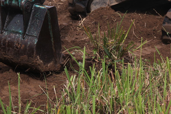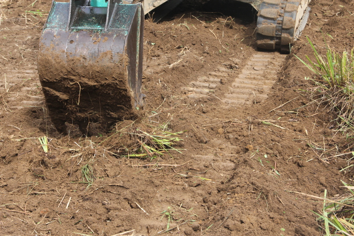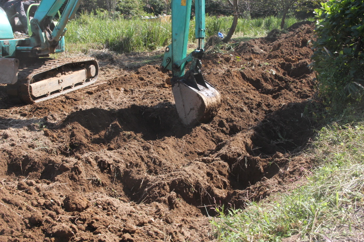 最初、スコップで植える穴を掘っていたが時間が掛かり過ぎるのでユンボで掘ることにした