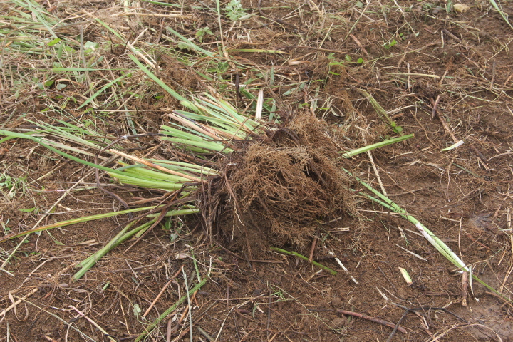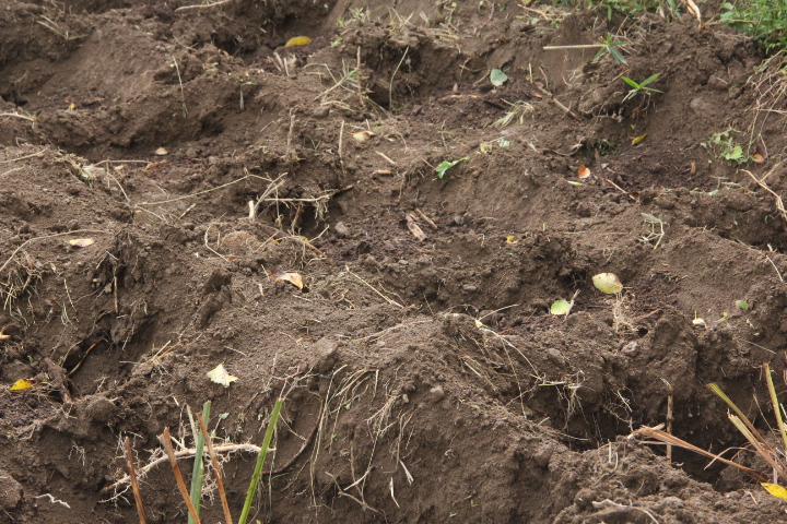 さらに、連作障害の元になる土を手でたたいて落とす、草の根も取り除く、