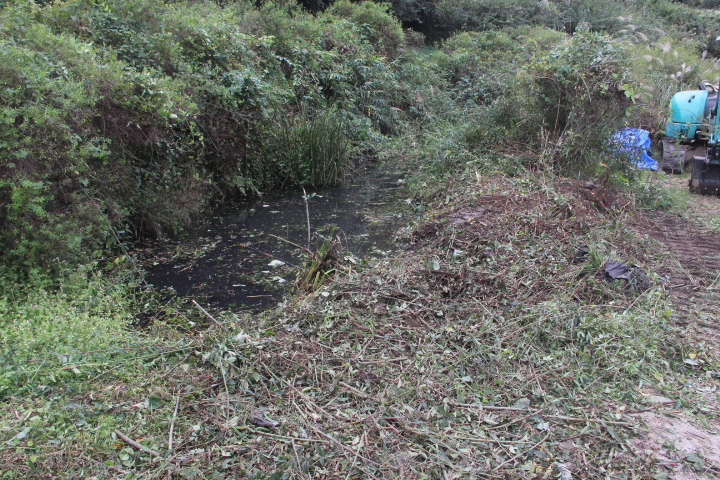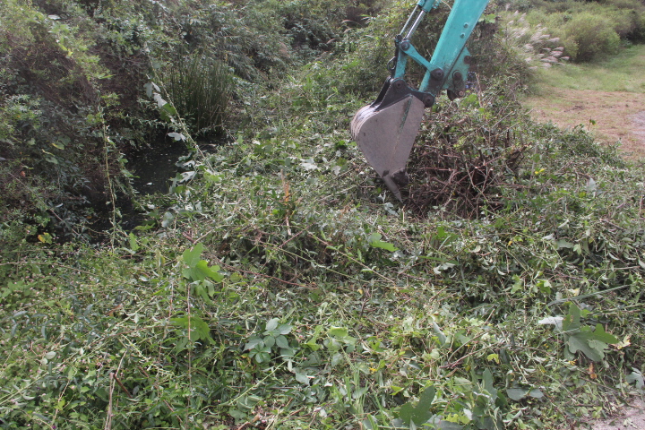 ノイバラには鋭い棘があるので、鋸で切るのは難しい、そこで仮払い機で粉々に切断した、またスズメバチの巣があり肝を冷やしたが、気温が下がり、人を刺す元気がなく幸いでした。