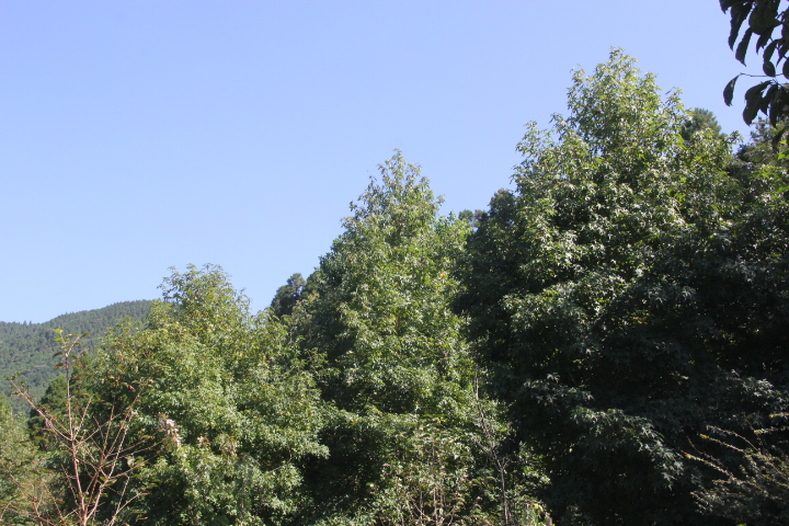 東屋1の垣根として植えた樫木は鹿の食害により歯抜け状態です
