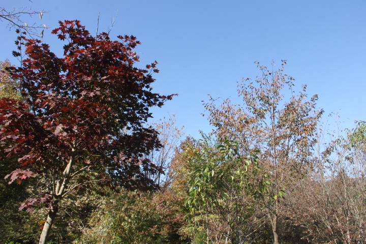 由布岳が紅葉した1週間後にユフリラ森も紅葉する