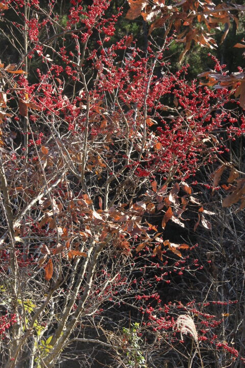 赤い実が鮮やかになる、やがて木の実は鳥の餌になる