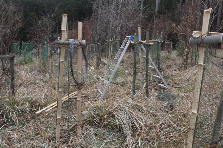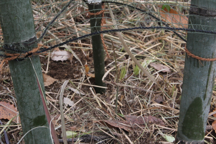 作業効率上、先に苗を連続して植え、後日、苗に保護カバーをしますが、カバー無しの時に鹿に苗の先端を食われることが有る。