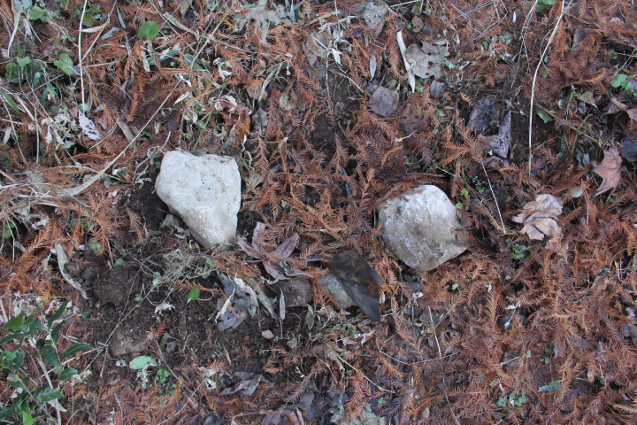 切った竹の先端部はキツネノカミソリを植えた場所に置き、落ちた葉を肥しにする予定だったが、まだ葉が枝についている、キツネカミソリがそろそろ発芽するので移動する