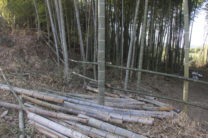 2月に入ると、猪が小さな筍を掘り始める、防護柵を作り、竹林にとって最大の敵を封じる