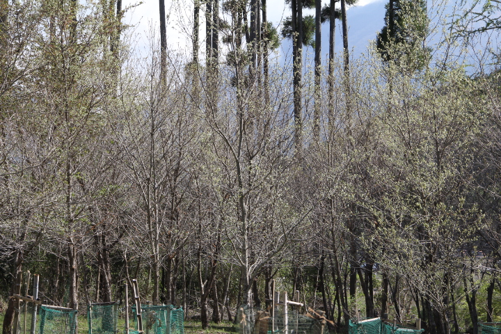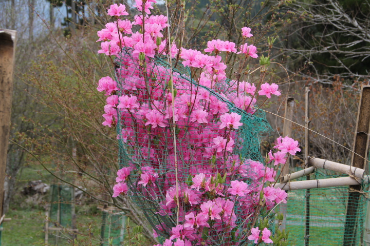最初に咲いた木ですが、木の上の方に咲いた花は霜で枯れました