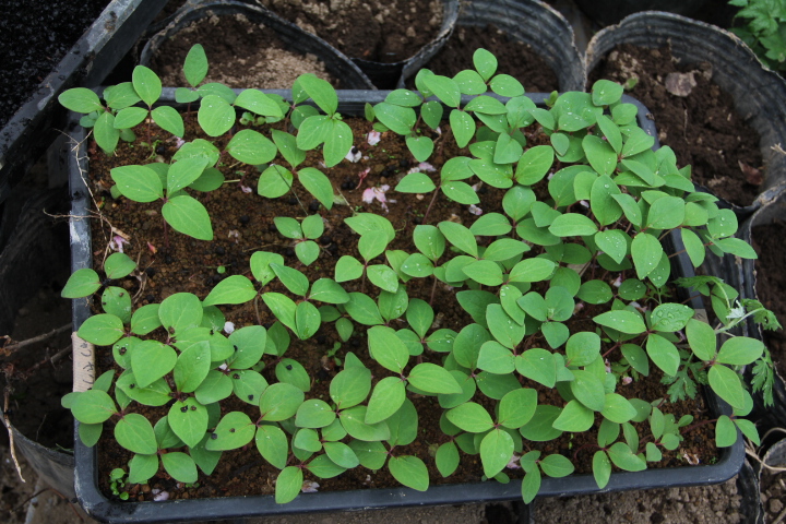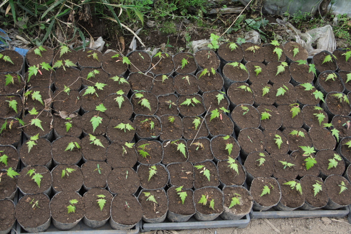 ヤマシシャクヤク、イロハカエデ、ヤマモミジ、イタヤカエデ、の発芽した苗をポットに移植