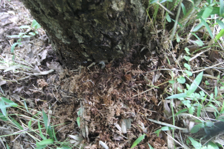 コナラの木に虫が入っている、農薬を注入し駆除した