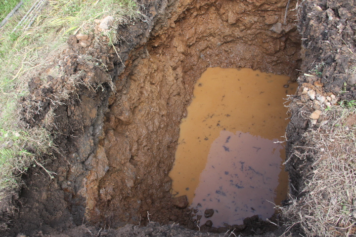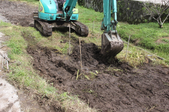 谷部ゆえ、4m掘れば水が出ると予想していたが、3mで水が出始めたので、掘るのはここまでとした