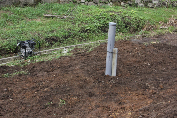 上に土を被せる、100mmのパイプを通して水をくみ上げる