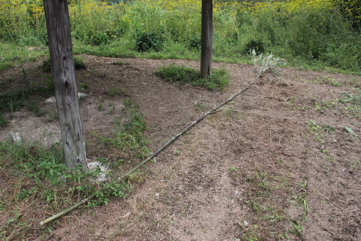 予防として、藪の上を5mの長さの笹でたたき蜂の有無を確認して草を刈ることにした