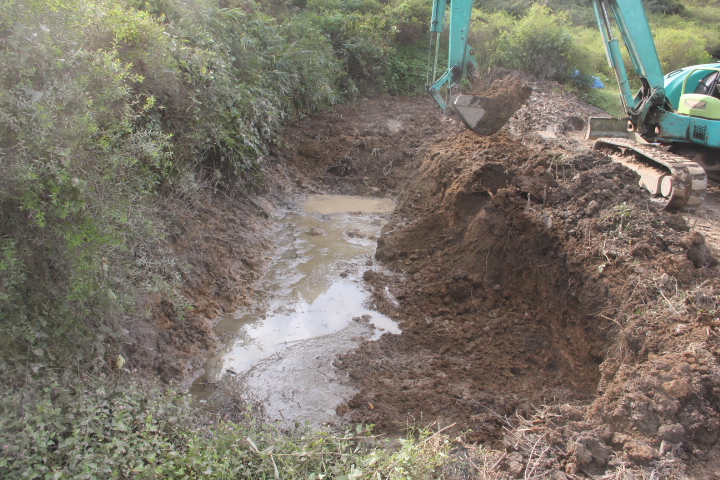 以前造っていた池を半分以上埋め(奥側)手前の幅を広げて池にする