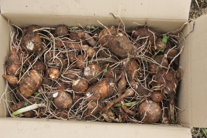 サトイモを収穫する