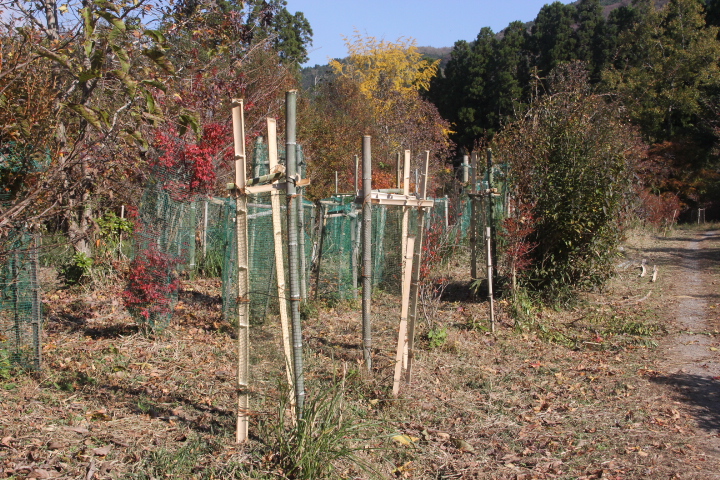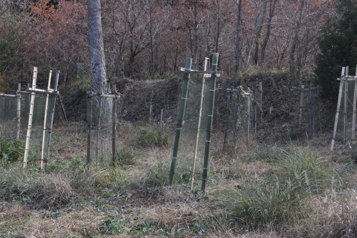 鹿による被害が止まらず、苗が成長しない、最後の手段として苗にネットを被せて保護する