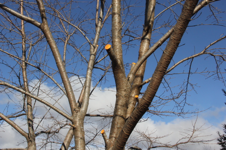 ソメイヨシノのテングス病に罹患した枝を剪定