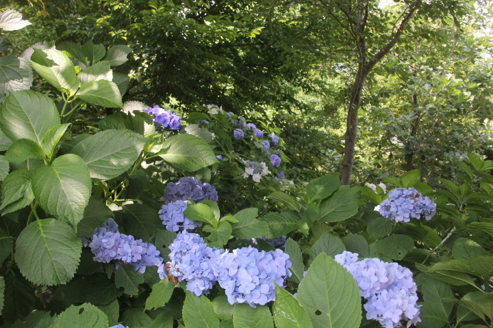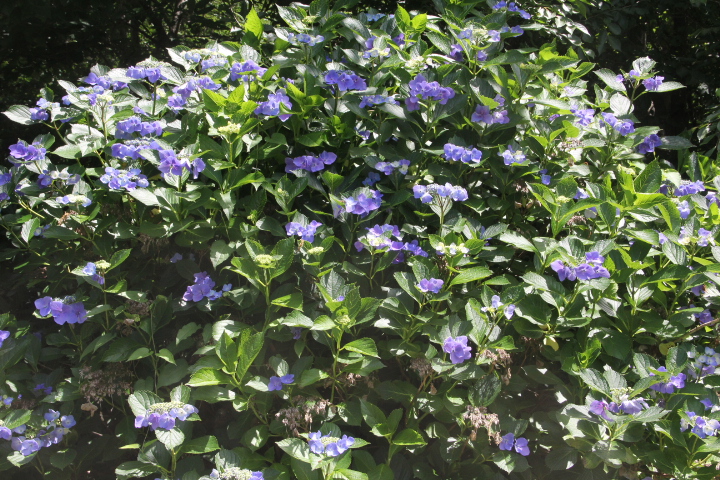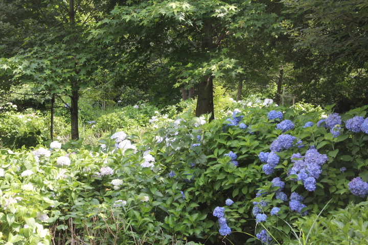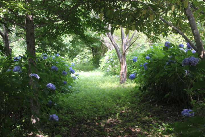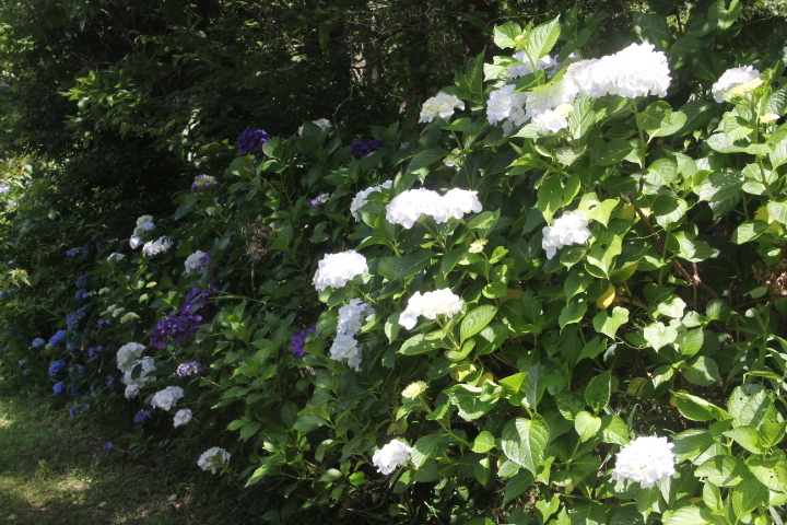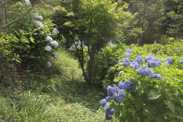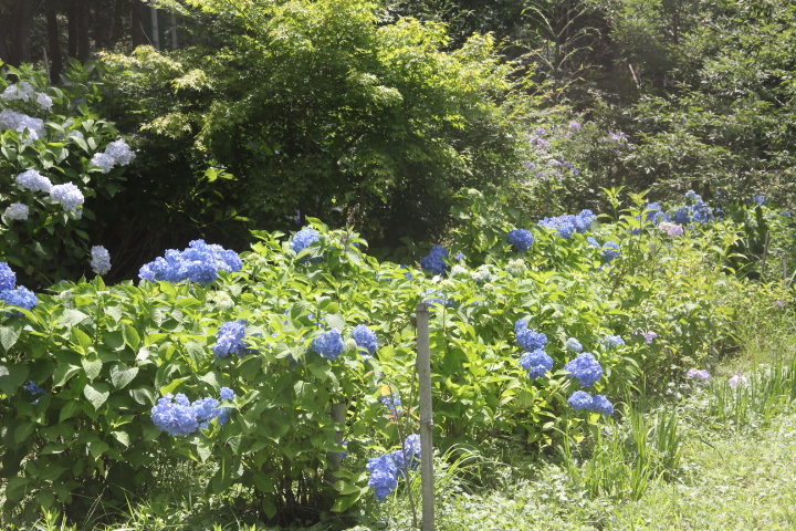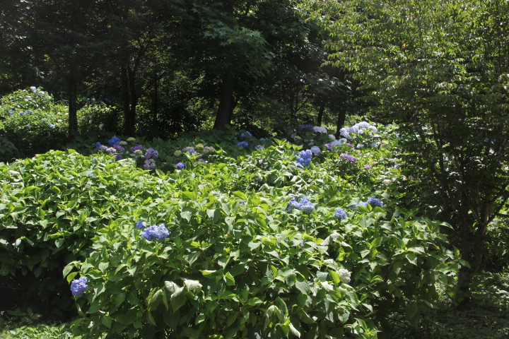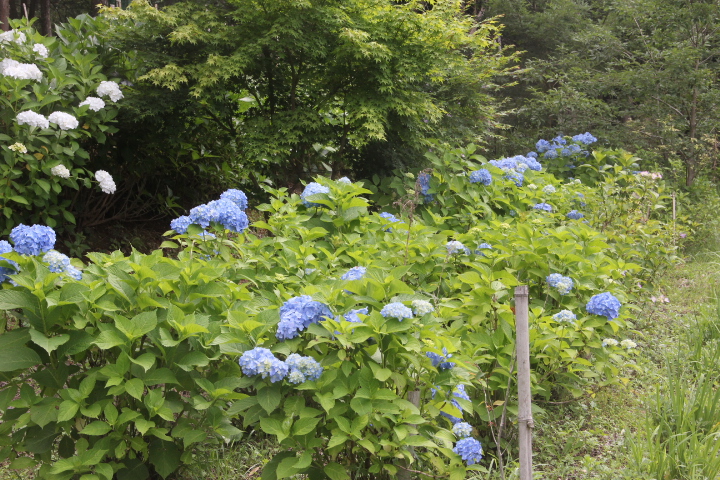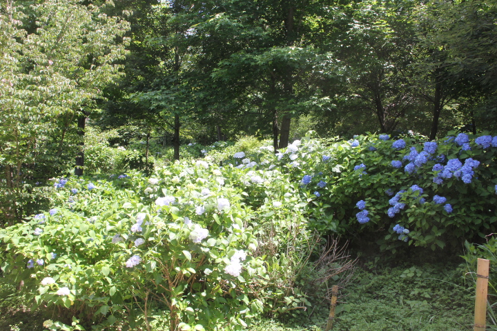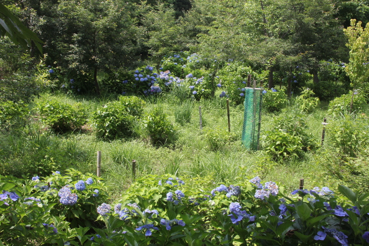 平地に植えたアジサイは夏の水不足や強い日差しで弱り枯れるものが多く出る。